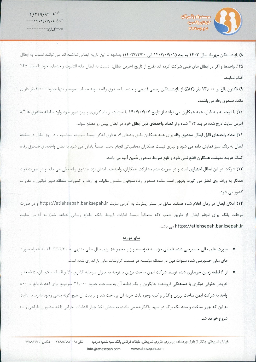 اطلاعیه ابطال ویژه بازنشستگان ادوار بانک سپه تا تاریخ 1403/12/30 زمان برگزاری 13 مهر 1404
